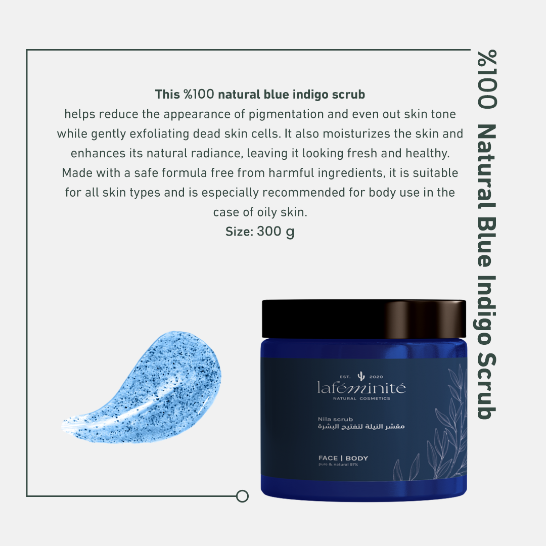 مقشر النيلة الزرقاء من لافيمينت يعتبر أفضل مقشر للجسم والوجه بفضل مكوناته الطبيعية اللي توفر لك نتائج فورية من أول استخدام يناسب كل أنواع البشرة وحتى المناطق الحساسة، ويُستخدم للوجه والجسم والركب والكوعين.